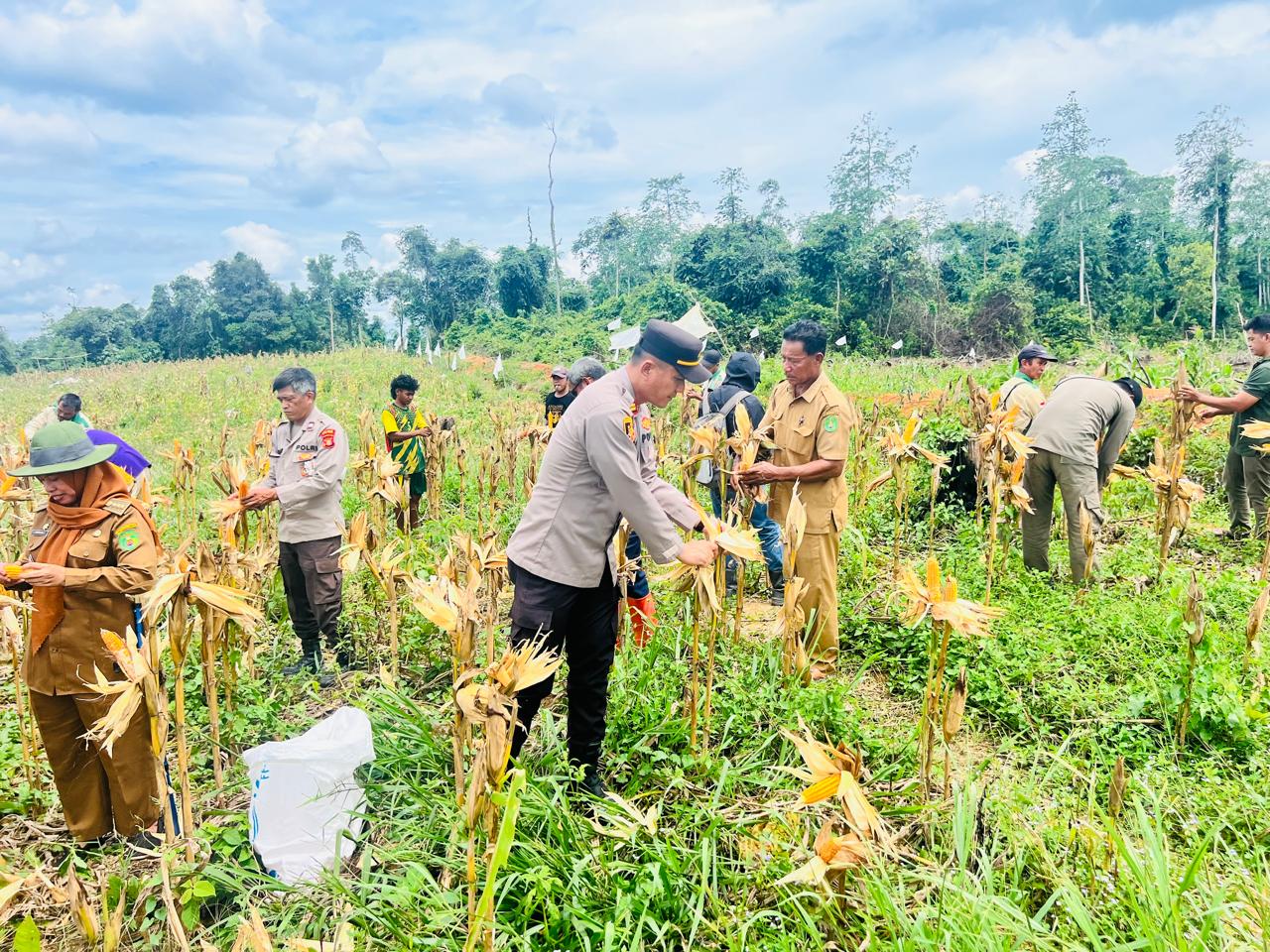 RANTAU PULUNG – Dalam upaya mendukung program ketahanan pangan nasional sekaligus memperkuat sinergitas antara pihak kepolisian, pemerintah, dan perusahaan, Kapolsek Rantau Pulung IPTU Herianto, S.H., menghadiri kegiatan panen perdana jagung hibrida yang dilaksanakan di areal PT. Sangatta Sejahtera (SS), Desa Rantau Makmur, Kecamatan Rantau Pulung, Kabupaten Kutai Timur, pada Senin, 27 Oktober 2025 pukul 11.00 WITA.
