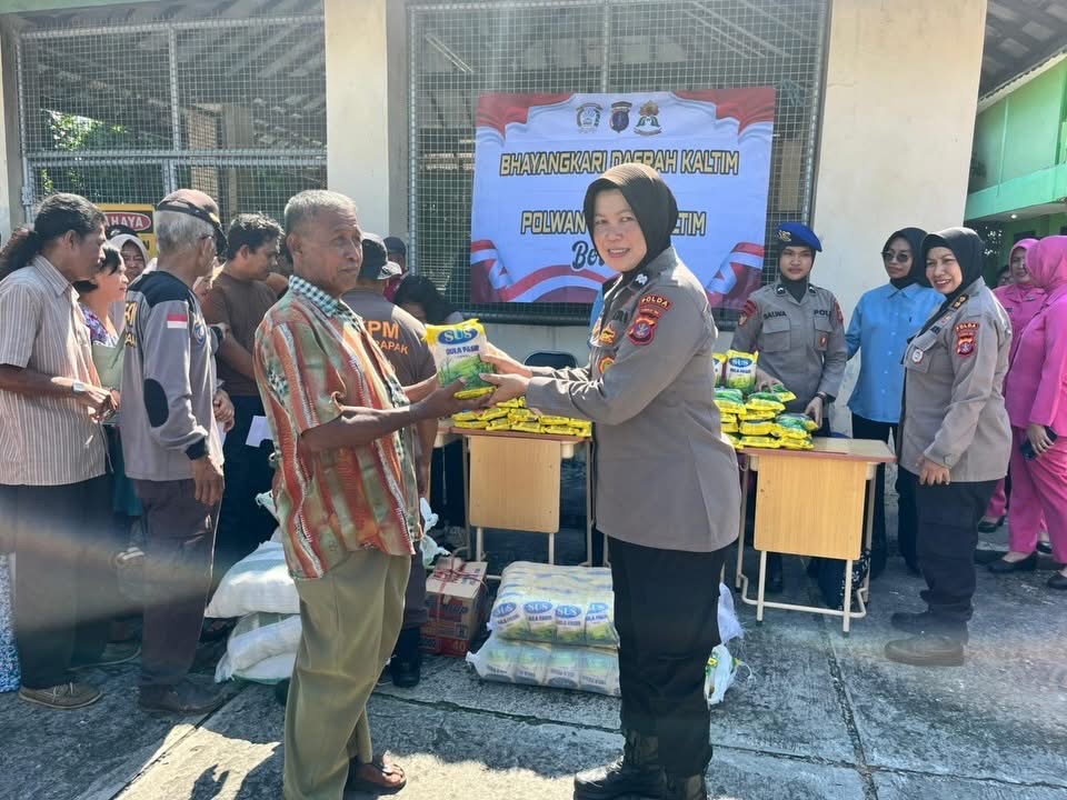 Polda Kaltim Hadirkan Kepedulian, Polwan dan Bhayangkari Berbagi kepada Warga Muara Rapak