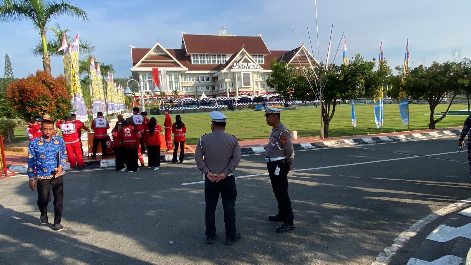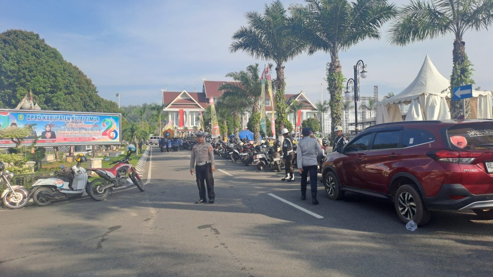 Sat lantas Polres Kutim – Personel Satlantas Polres Kutim melaksanakan kegiatan pengamanan dan pengaturan lalu lintas (Pamturlalin) Upacara Memperingati Hari Ulang Tahun Kutai Timur, Minggu 12 Oktober 2025 Pukul 07.00 s/d selesai