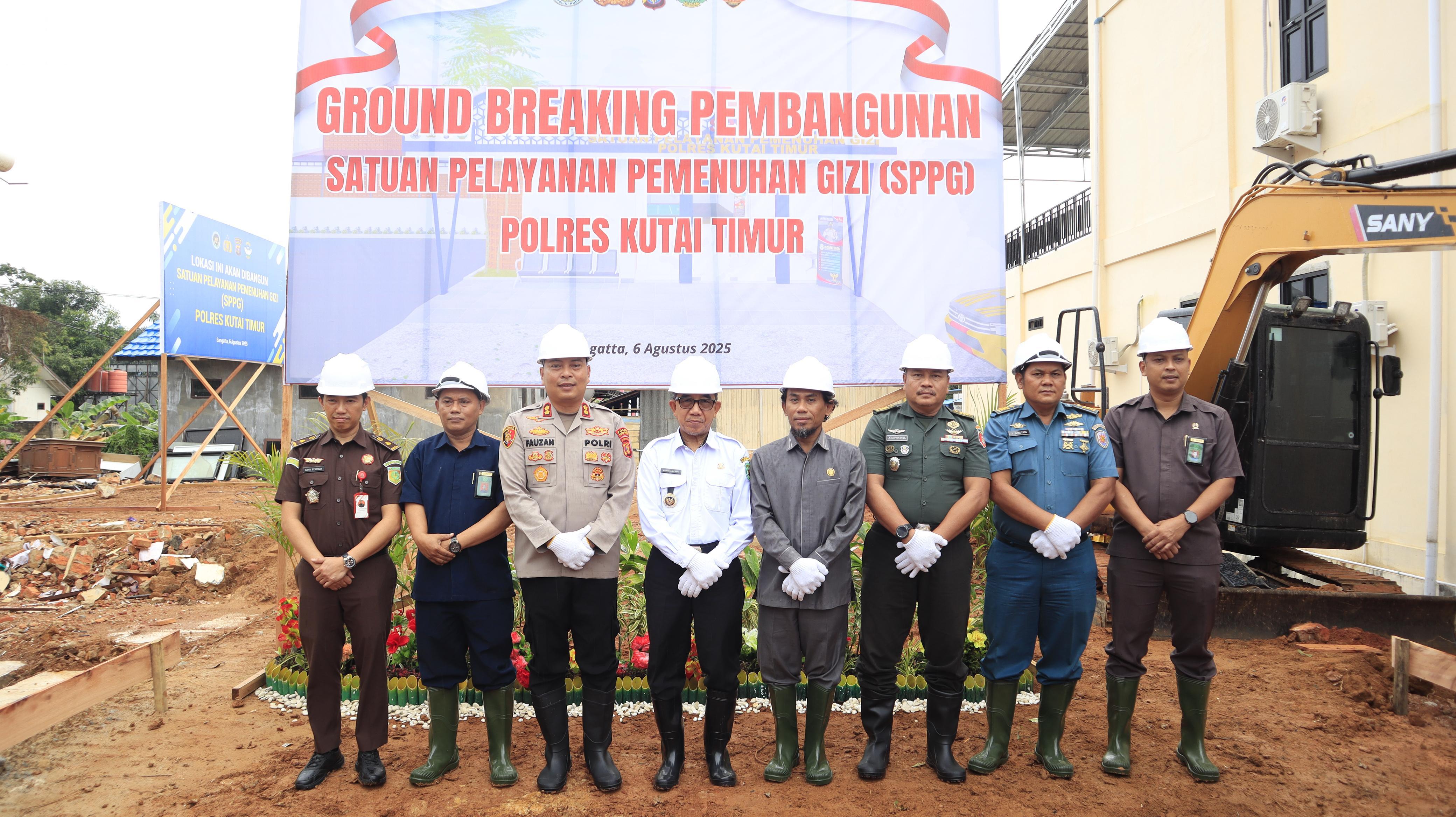 Sangatta, Kutai Timur – Polres Kutai Timur turut serta dalam acara Groundbreaking Satuan Pelayanan Pemenuhan Gizi (SPPG) Makan Bergizi Gratis (MBG) secara serentak se-Indonesia pada hari ini, Rabu, 6 Agustus 2025. Acara bersejarah ini dipusatkan di halaman Polsek Sangatta Utara dan dihadiri oleh seluruh jajaran Forum Komunikasi Pimpinan Daerah (Forkopimda) Kabupaten Kutai Timur.