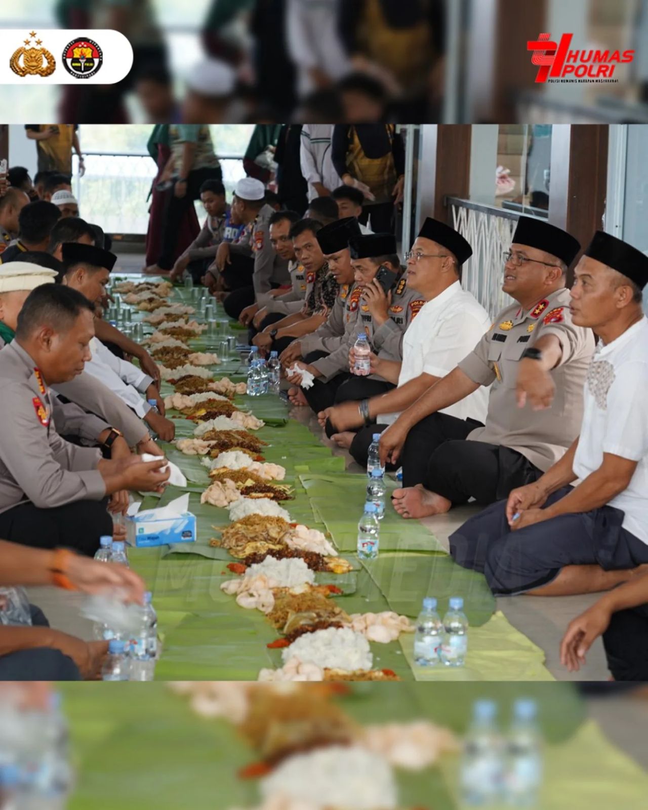 Polri melalui Polda Sulawesi Barat (Sulbar) menggelar kegiatan Berbagi Berkah sebagai wujud kepedulian dan kebersamaan antara Polri dan masyarakat di Masjid Jabal Rahmah, Mapolda Sulbar, Jumat (10/10). Kegiatan ini diisi dengan doa bersama dan makan bersama anak yatim serta personel kepolisian untuk mempererat tali silaturahmi dan menumbuhkan semangat solidaritas di lingkungan kerja. Suasana penuh keakraban terlihat saat para personel berbaur hangat bersama anak-anak yatim. Program ini menjadi bentuk nyata komitmen Polri dalam menebar kebaikan dan memperkuat citra sebagai institusi yang humanis. Rangkaian #HUTHumasPolri74 Terus Setia Melayani Publik Wujudkan Polisi Humanis Harapan Masyarakat