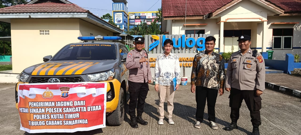 Kutai Timur – Dalam mendukung program ketahanan pangan nasional, Polsek Sangatta Utara Polres Kutai Timur (Kutim) menyerahkan hasil panen jagung binaannya ke Gudang Bulog Samarinda, Jalan Ir. Sutami, Komplek Pergudangan Karang Asam Ulu I, Kecamatan Sungai Kunjang, Kota Samarinda, Kamis (09/10/2025).