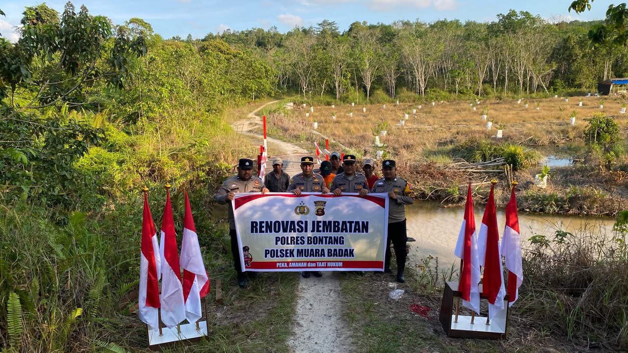 Tribratanews.kaltim.polri.go.id, Bontang – Sebagai bentuk kepedulian terhadap fasilitas umum, Polsek Muara Badak Polres Bontang bersama masyarakat melaksanakan kegiatan perbaikan jembatan di Jalan Sinar Harapan RT.16, Desa Badak Makmur, Kec.Muara Badak, Senin (20/04/26). Kegiatan tersebut dipimpin langsung oleh Kapolsek Muara Badak Iptu Danang Wahyu Rahardika, S.H., M.H., didampingi Wakapolsek Iptu Nursalim, serta diikuti para Kanit, Kasi, personel Polsek Muara Badak, dan warga setempat yang turut bergotong royong dalam proses renovasi.