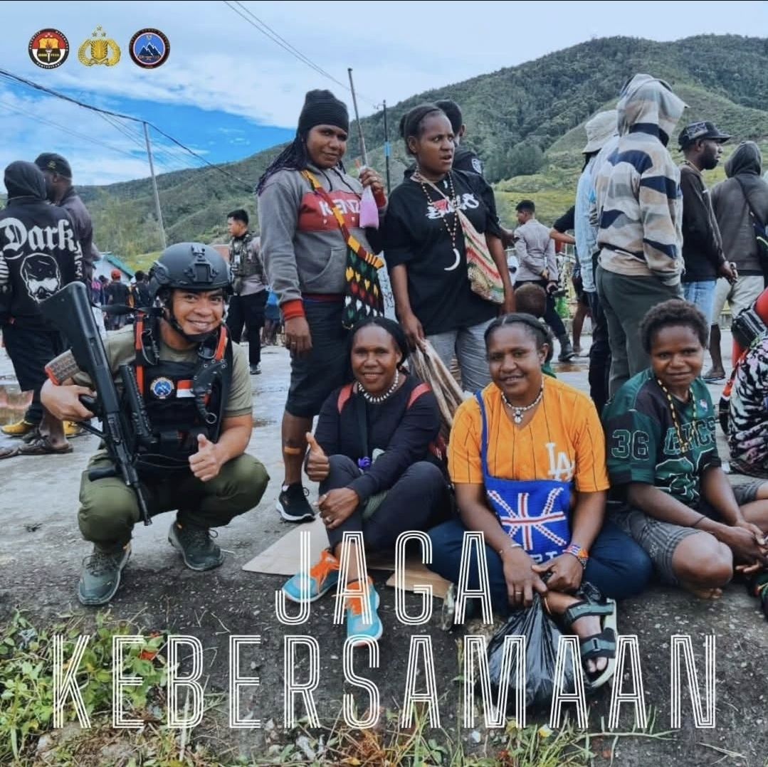 Keterangan itu diperkuat dengan foto yang menampilkan anggota Satgas berinteraksi akrab dengan warga. Tindakan ini diklaim sebagai wujud nyata cinta pada negara dan persaudaraan di seluruh Indonesia. Kehadiran personel di lapangan bertujuan menjaga stabilitas dan menciptakan rasa aman di tengah masyarakat.