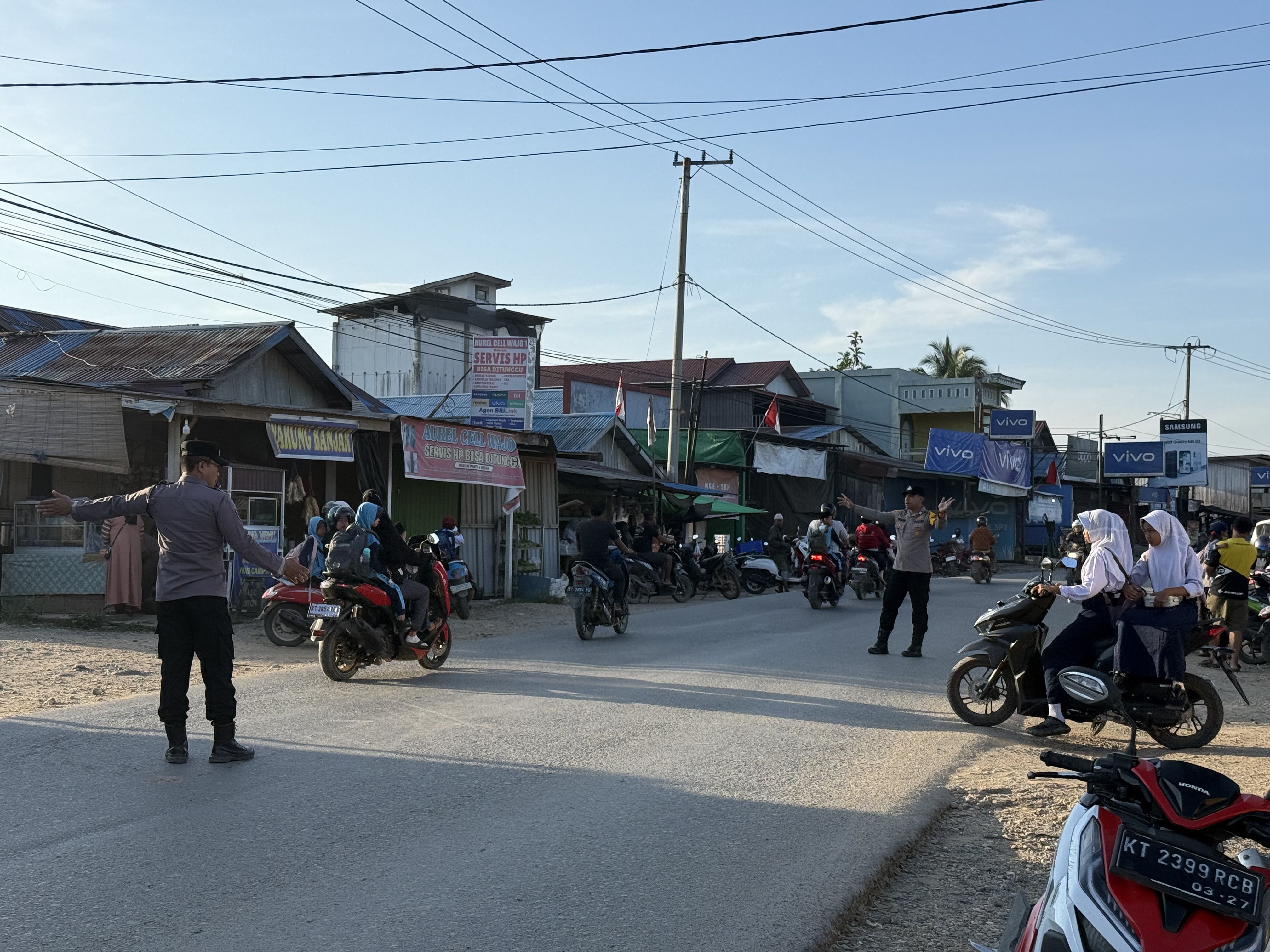 Polsek Muara Wahau Gelar Pengaturan Lalu Lintas Pagi, Prioritaskan Keamanan Pelajar dan Kelancaran Jalan