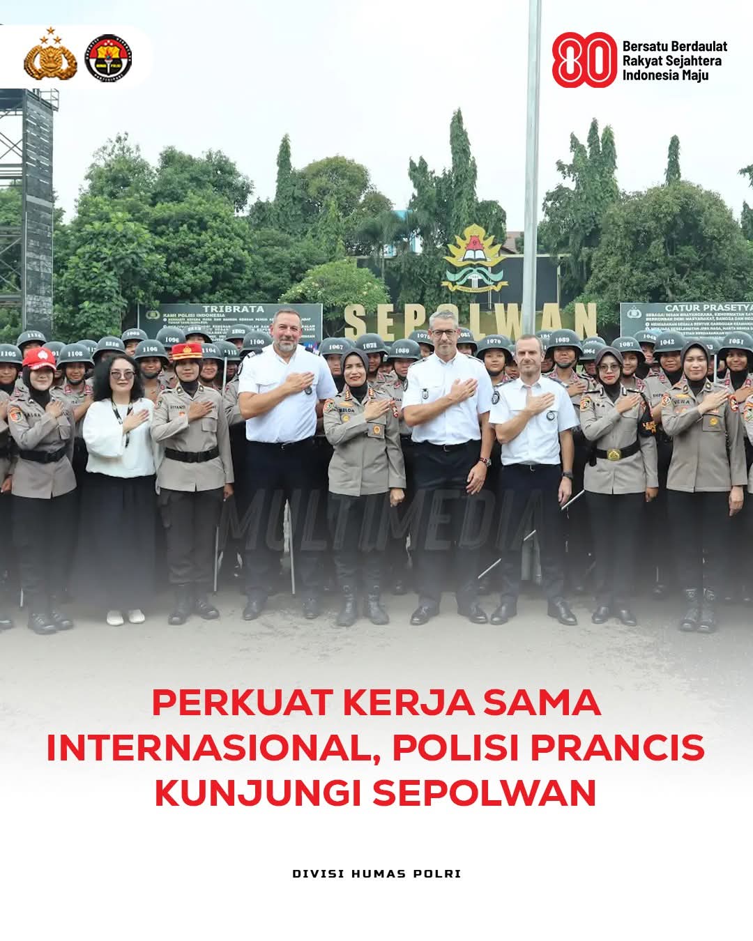 Sekolah Polisi Wanita (Sepolwan) Lemdiklat Polri menerima kunjungan kehormatan dari delegasi Kepolisian Prancis yang dipimpin Senior Superintendent Guillaume Calas. Kunjungan pada Selasa (7/10), ini menjadi bagian dari penguatan kemitraan strategis Indonesia–Prancis di bidang pertahanan dan keamanan, khususnya dalam pertukaran pendidikan kepolisian. Delegasi disambut langsung oleh Kepala Sepolwan, Kombes Pol. Dr. Melda Yanny, S.I.K., M.H. Rombongan Kepolisian Prancis diajak meninjau fasilitas pendidikan serta ruang tematik yang mendukung pembelajaran interaktif, kepemimpinan, dan empati.