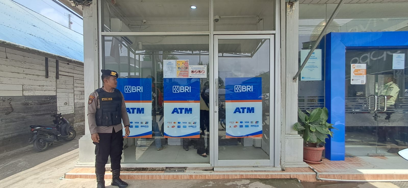 Personil Polsek Sangkulirang Laksanakan Patroli di Bank BRI Kecamatan Sangkulirang pada Pagi Hari