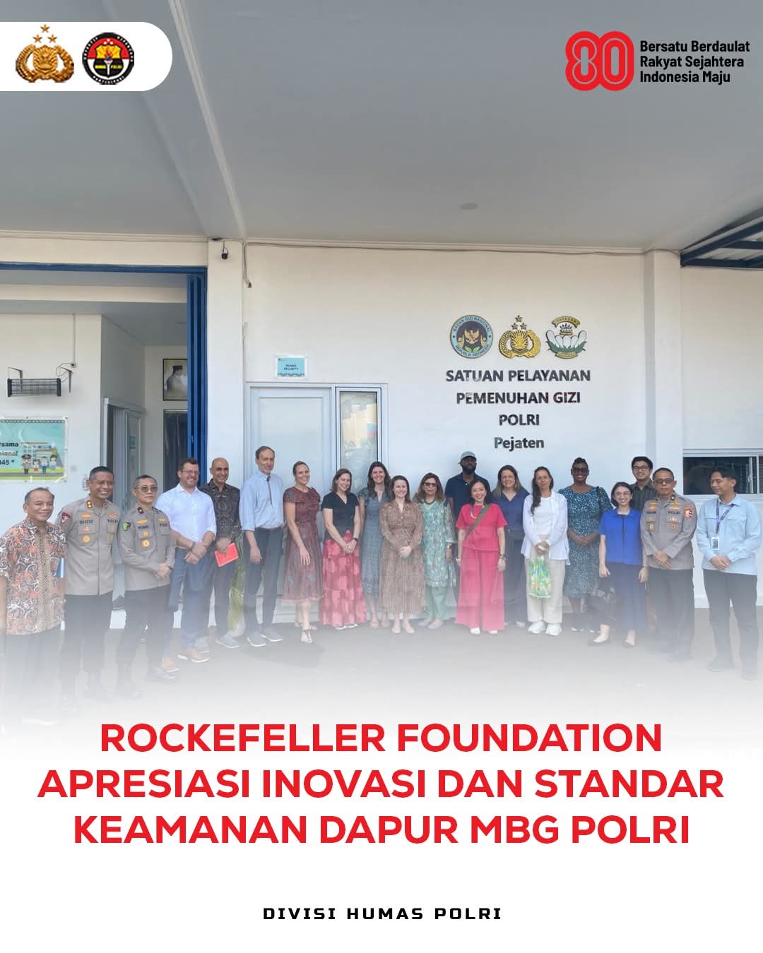 Polri kembali menunjukkan komitmen mendukung visi Asta Cita Presiden RI melalui program Makan Bergizi Gratis (MBG) dengan membangun Sentra Pelayanan Pemenuhan Gizi (SPPG) Polri. Inovasi ini mendapat apresiasi dari Rockefeller Foundation saat meninjau langsung SPPG Polri di Pejaten, Jakarta Selatan. Kunjungan dipimpin Executive Vice President Rockefeller Foundation bidang Program Strategy, Elizabeth Yee, yang menilai Polri berhasil menerapkan sistem produksi efisien dengan standar keamanan pangan tinggi. Ia mengapresiasi desain dapur, tata kelola, serta kecepatan kerja yang dinilai modern dan profesional. Rockefeller Foundation juga menyoroti penerapan teknologi hidroponik, pemberdayaan masyarakat lokal, serta kemampuan dapur SPPG memproduksi hingga 3.000 porsi makanan bergizi per hari. Konsep security food dan penjaminan kehalalan serta sanitasi air turut menjadi keunggulan tersendiri. Perwakilan Satgas MBG Polri, Brigjen Pol. H. Ihsan Amin, S.I.K., M.H., menyampaikan bahwa SPPG Polri dirancang sebagai model bisnis sosial berkelanjutan dengan sistem distribusi transparan, terutama untuk daerah 3T (Tertinggal, Terdepan, dan Terluar). Melalui konsep inovatif dan berstandar tinggi, SPPG Polri Pejaten kini menjadi pionir nasional dalam tata kelola pangan bergizi yang aman, berkelanjutan, dan berpihak pada masyarakat.