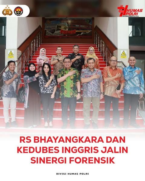 Kedatangan rombongan Kedubes Inggris diterima langsung oleh Kepala RS Bhayangkara Tk. I Pusdokkes Polri, Brigjen Pol. dr. Prima Heru Yulihartono, M.Kes., M.H., beserta jajaran forensik. Kunjungan ini bertujuan memperdalam pemahaman tentang prosedur forensik di Indonesia serta berbagi pengalaman terkait penanganan jenazah WNA. Sementara itu, Karumkit Bhayangkara menegaskan pentingnya kerja sama lintas negara untuk menjamin proses forensik yang profesional dan transparan. Kedutaan Inggris pun menyampaikan apresiasi atas sambutan dan diskusi terbuka tersebut. Kedua pihak berharap sinergi di bidang kedokteran forensik terus diperkuat demi penanganan kasus kemanusiaan lintas negara yang lebih baik.