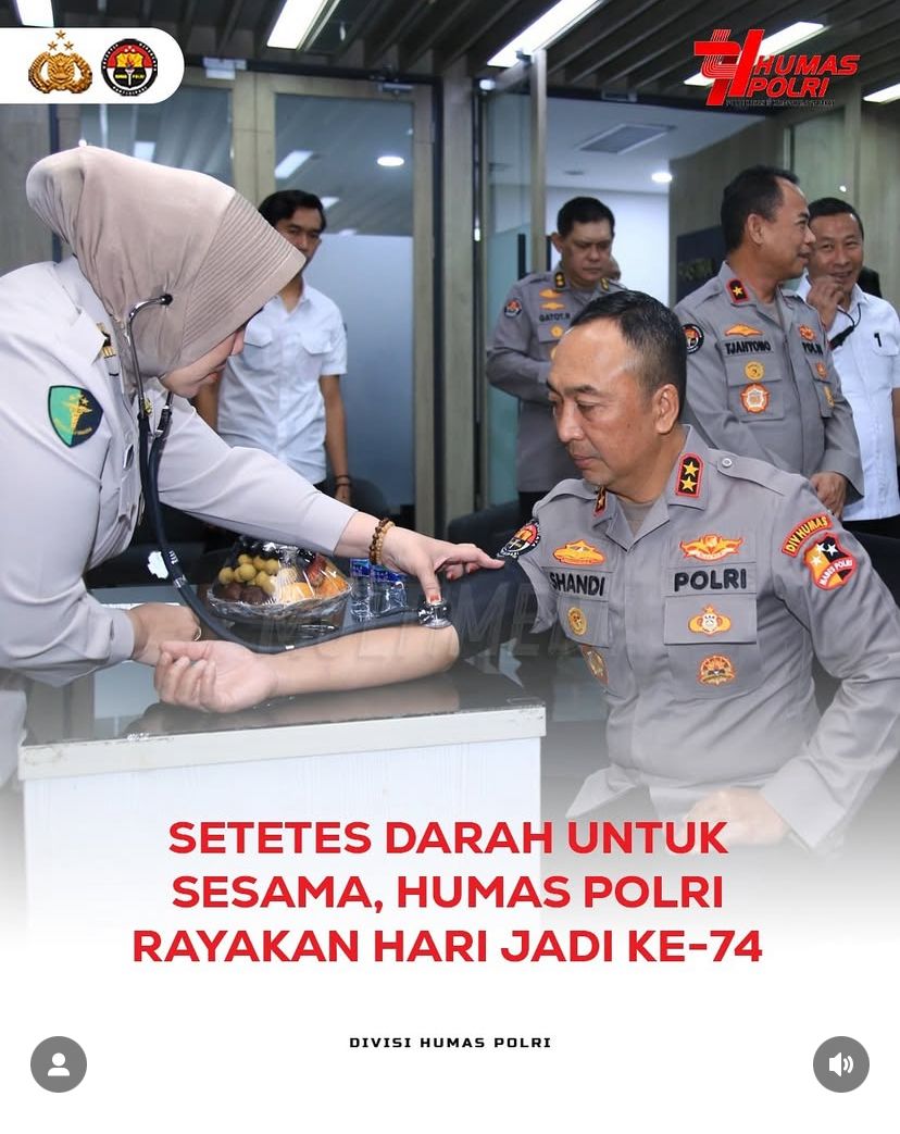 Kegiatan ini dipimpin langsung oleh Kadiv Humas Polri Irjen Pol. Dr. Sandi Nugroho, S.l.K., S.H., M.Hum., dan berlangsung di Ruang Satya Haprabu, Divisi Humas Polri, pada Rabu (22/10). Selain itu, donor darah diikuti oleh para personel Polri dan ASN Polri yang sebelumnya telah melalui serangkaian pemeriksaan medis. Melalui aksi kemanusiaan ini, Humas Polri menegaskan komitmennya untuk terus hadir dan berbagi, tidak hanya melalui informasi, tetapi juga dalam aksi nyata bagi masyarakat.