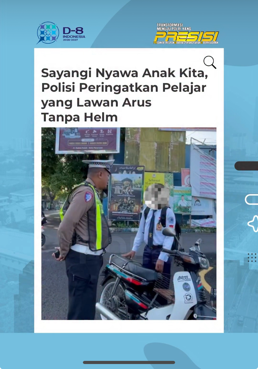 Petugas dengan sigap memberhentikan dan memberikan pembinaan kepada pelajar yang mengabaikan keselamatan dengan berkendara tanpa helm serta melawan arus lalu lintas. Langkah preventif ini diambil semata-mata karena Polri peduli terhadap keselamatan jiwa anak-anak kita.