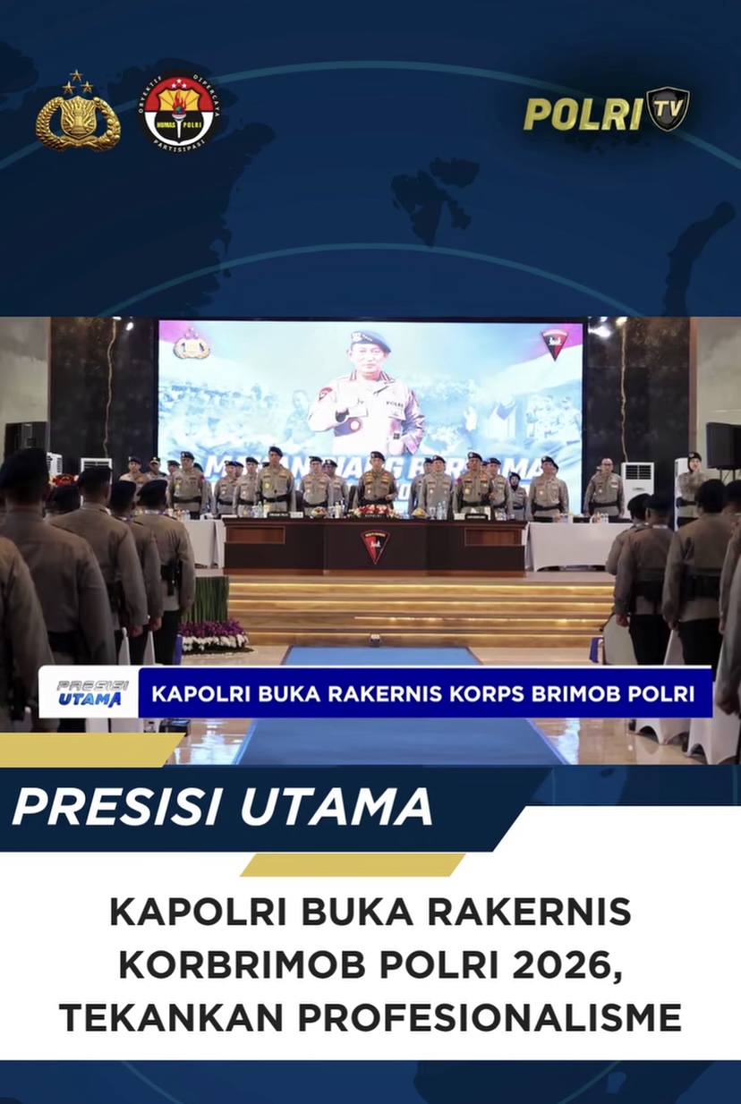 Kapolri Listyo Sigit Prabowo resmi membuka Rapat Kerja Teknis atau Rakernis Korps Brimob Polri Tahun 2026 sebagai wujud penguatan peran strategis Brimob dalam mendukung program Polri dan menyukseskan rencana kerja pemerintah tahun 2026.