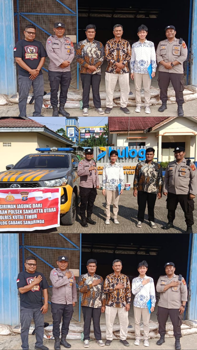 Kutai Timur – Dalam mendukung program ketahanan pangan nasional, Polsek Sangatta Utara Polres Kutai Timur (Kutim) menyerahkan hasil panen jagung binaannya ke Gudang Bulog Samarinda, Jalan Ir. Sutami, Komplek Pergudangan Karang Asam Ulu I, Kecamatan Sungai Kunjang, Kota Samarinda, Kamis (09/10/2025).